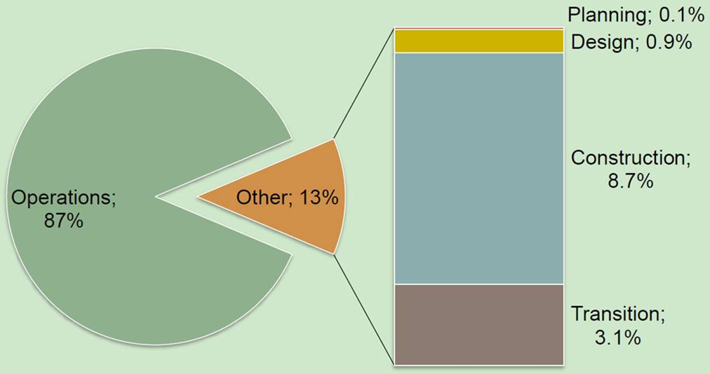 When over 85% of the lifecycle cost of a facility happens after the design and construction, the cost to operate and maintain the project greatly exceeds the construction cost.